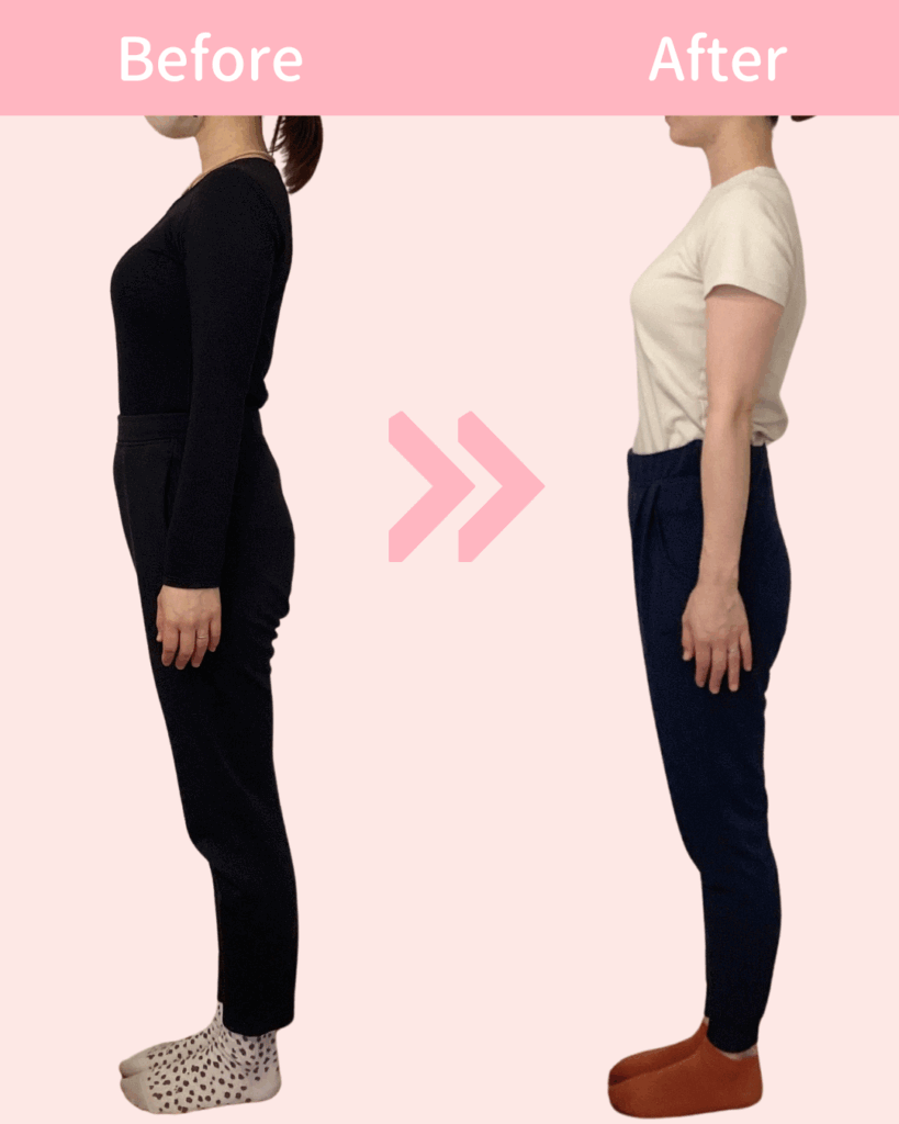 一人目の時に股関節、腰痛で大変だった💦二人目は元気に過ごしたい! こんなに変わる!ビフォーアフター 産後骨盤矯正(10回)の変化です♪ ・前のめり姿勢改善・お腹スッキリ✨