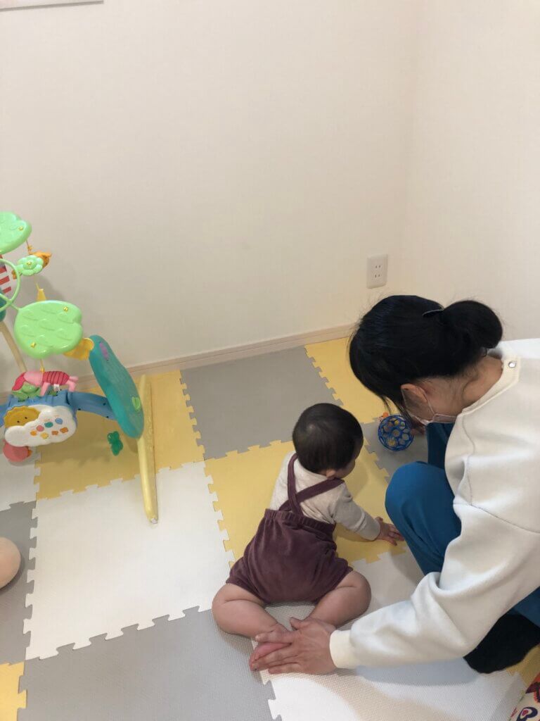 この日の託児スタッフは、元ベテラン保育士さん。 ママの「後ろには下がるけど、なかなか前には進まない」との会話より、急遽発達の手助け方法のレクチャーが始まりました♪ さすが、保育士さん!という内容で、ママもわたしも「ほぉー!!」ってなりました...